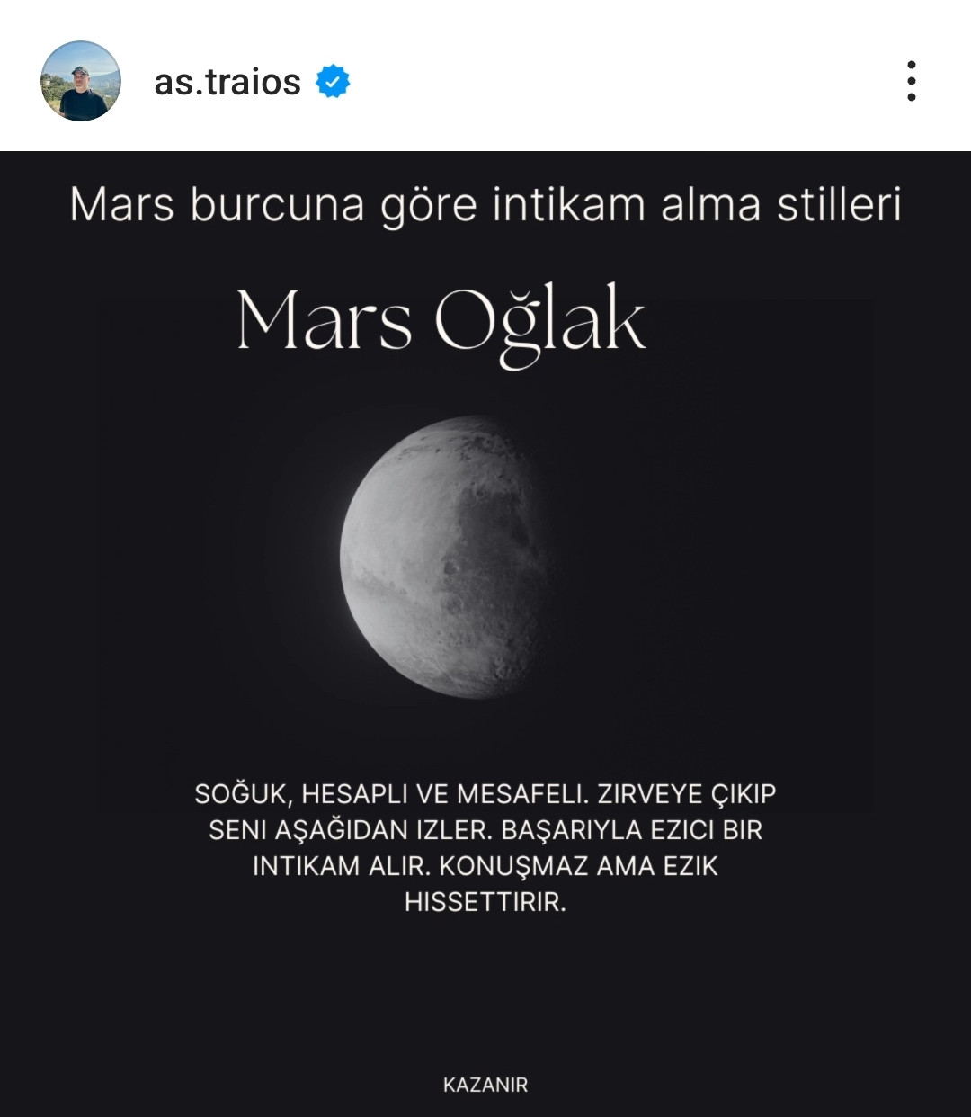 Instagram hesabımdan Mars burçlarının intikam alma şeklini yazdım. Inceleyin innstagramdan lütfen.